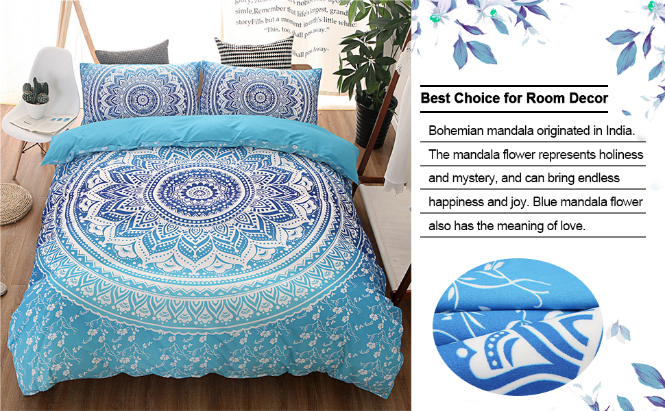 Mandala Comforter Set - Full Bohemian Comforter Set 3-Piece, Boho Quilt with Hidden Zipper and 4 Corner Ties, USBELFF