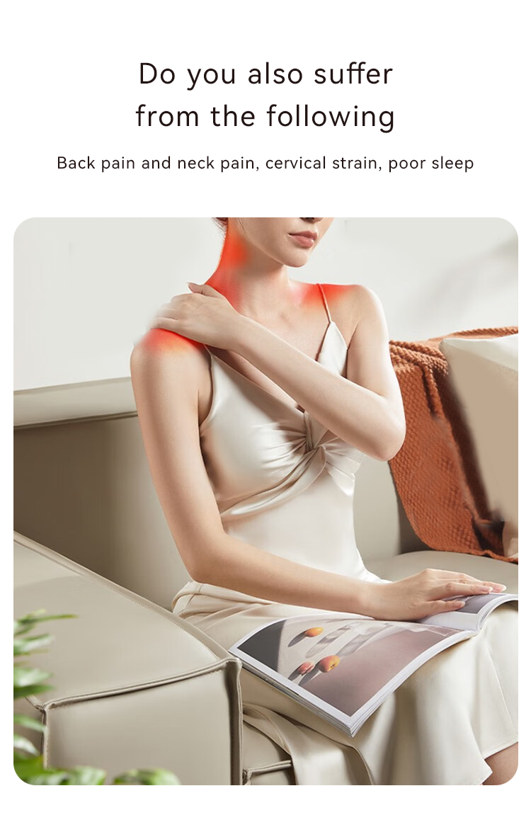 【Real Human Hand Massage Simulation】 Innovative 3D simulation that feels as if you are kneading with your own hands, allowing you to reach a wider massage area from the neck to trapezius muscles and shoulders. Six massage heads simulate real human pressing, kneading, tapping and motion techniques to continuously deliver higher massage intensity, effectively relieving all discomfort in different parts of the body.