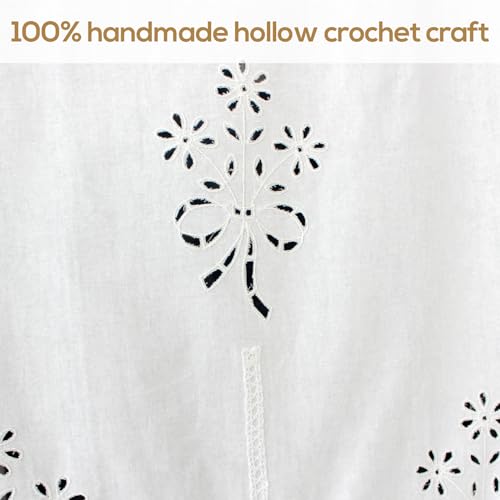 USBELFF Handmade Crochet Lace Curtain Cotton Window Curtain with Tassels Hollow Flower Curtain for Cafe Kitchen Bedroom Door (One Panel, W 27 Inch × H 59 Inch), White