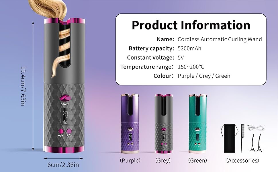 【LED Display and Portable Charging】 The LED display clearly shows temperature, direction (left/right), timer and remaining capacity. The cordless hair curler a built-in 5000mAh battery that can be charged via car USB, laptop, mobile power, etc.; it can run for 60 minutes when fully charged. ❤Note: Running time will vary depending on heat and timer settings. 【Stylish and Lightweight】 Stylish and lightweight design that fits neatly into your backpack. And comes with a USB charging cable, perfect for travel and a perfect gift for women.COMCATIONTEPATIOGEMA