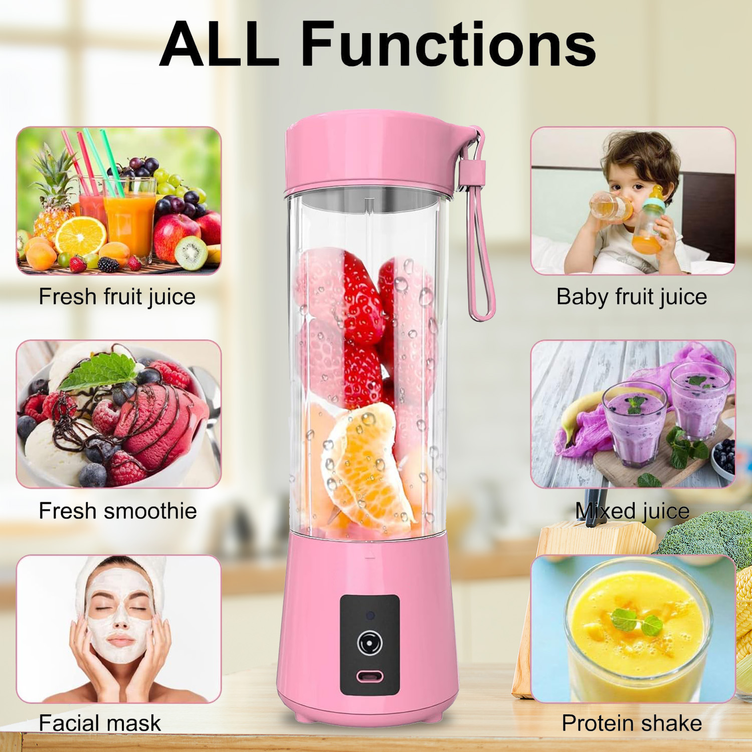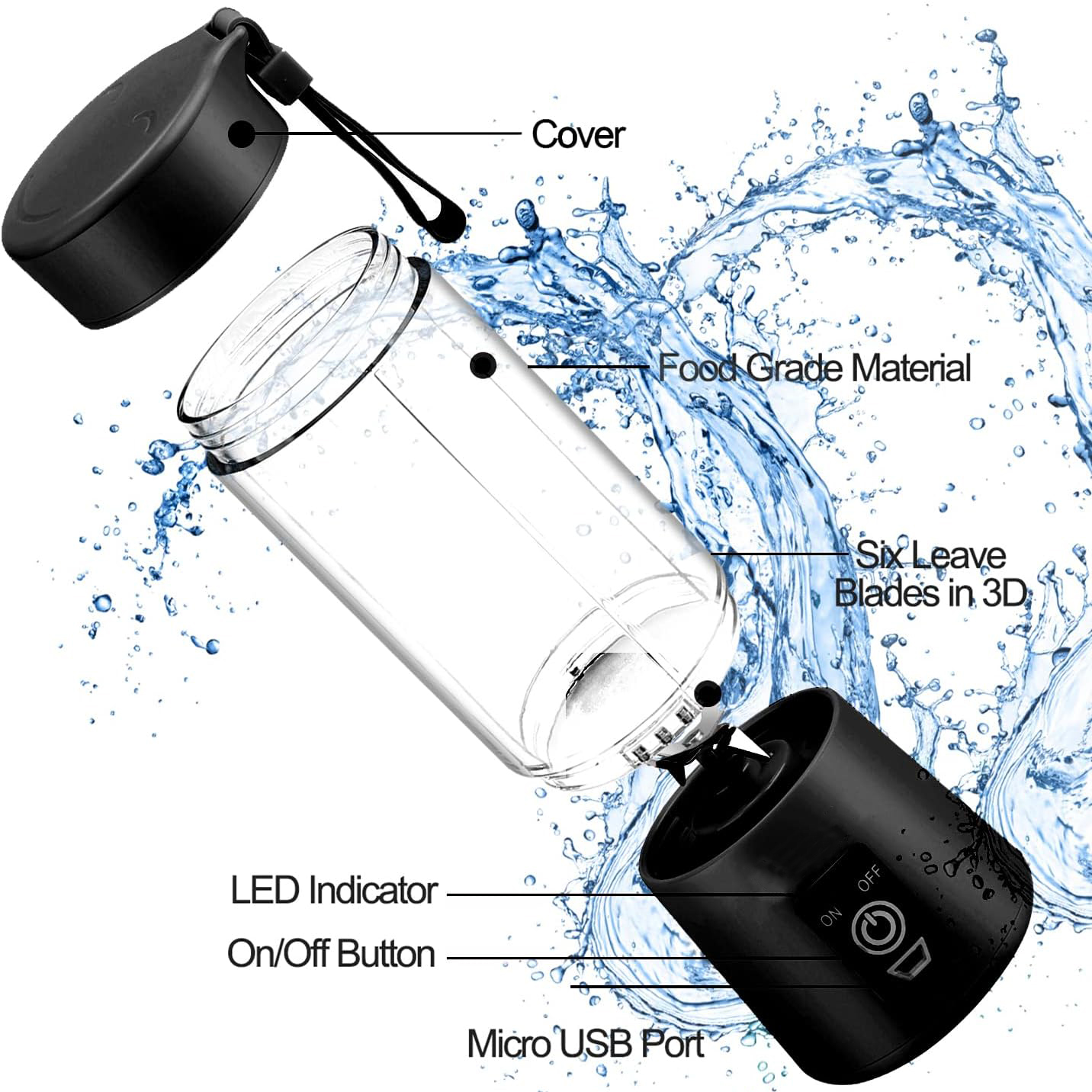 Portable Blender For Smoothies & Shakes - Fresh Juice Blender Bottle Portable, 13oz Cordless Personal & Small Blender, USB Rechargeable & Self Cleaning, Quiet Mini Travel Blender With Stainless Steel Blade