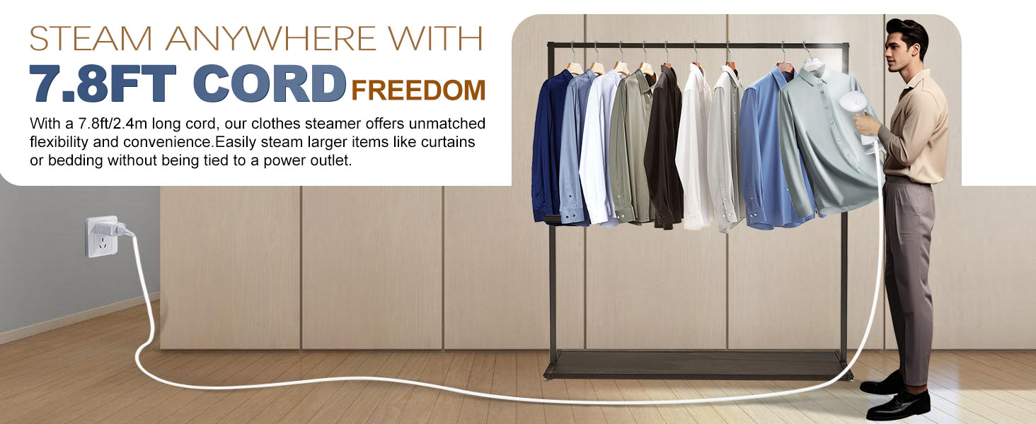 【Lightweight & Portable Size】 Ensure comfortable control and use cause its lightweight, portable size and ergonomic hand held design, this clothes steamer is perfect for home, office and travel. Get this garment steamer to make life and work easier.